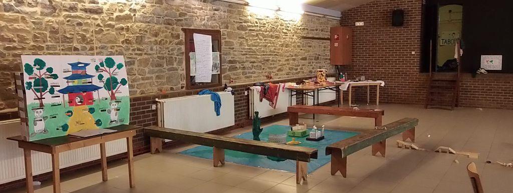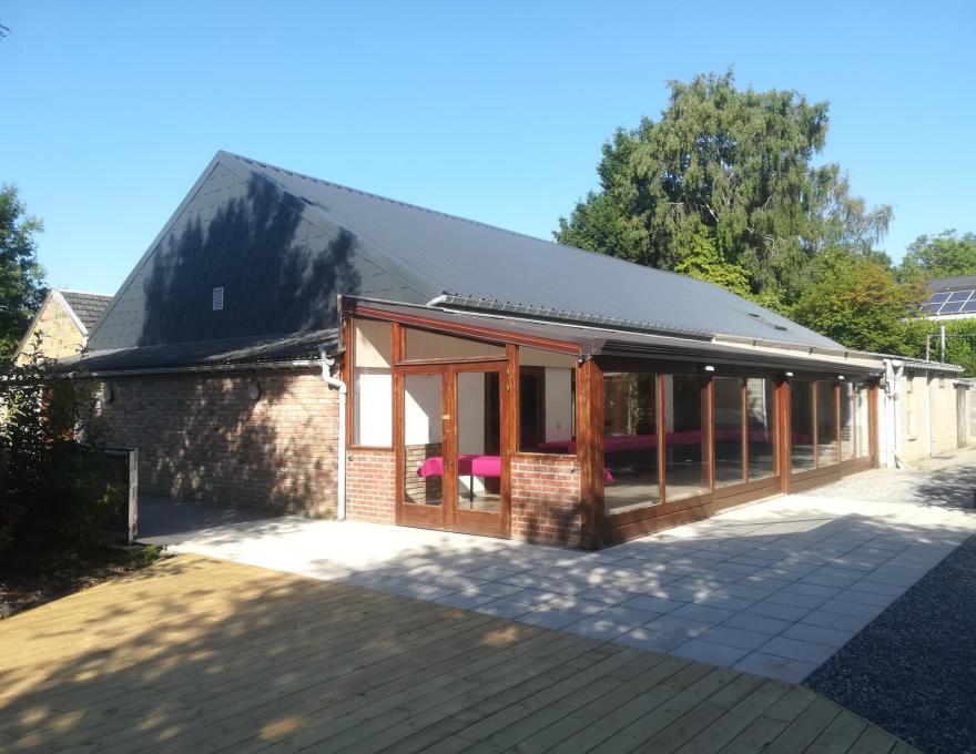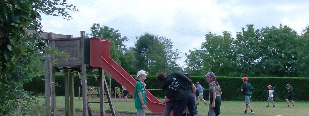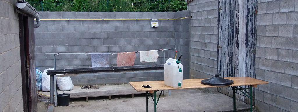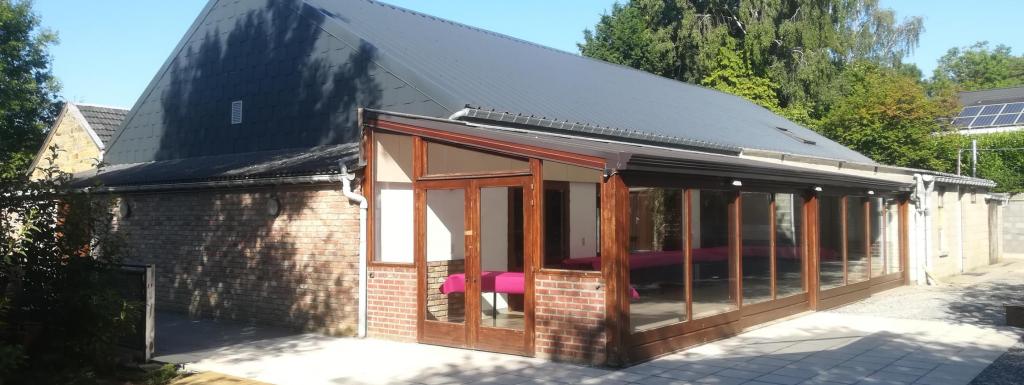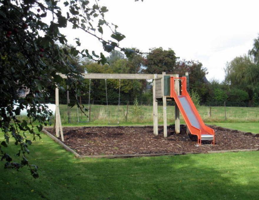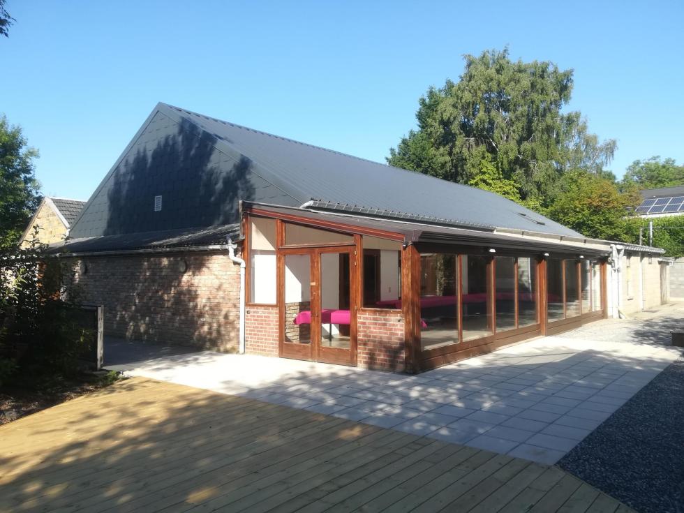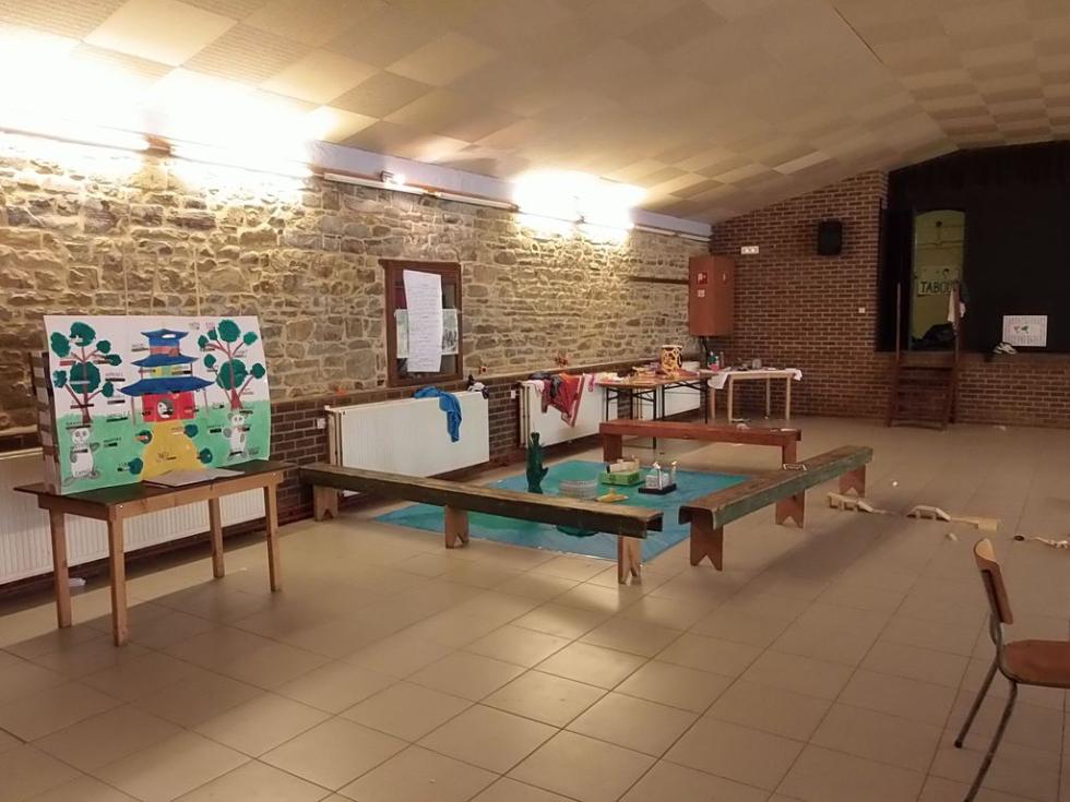 A l'extérieur, juste derrière la salle: plaine de jeux (toboggan, balançoires), prairie pour les jeux (3400 m²) et feu de camp, parking privé 6 voitures.