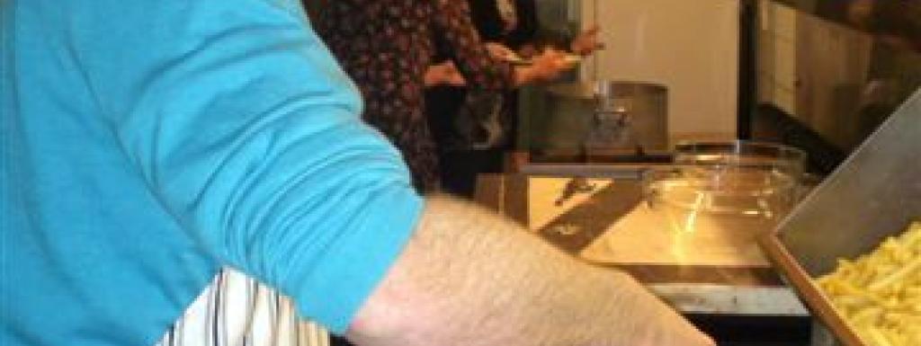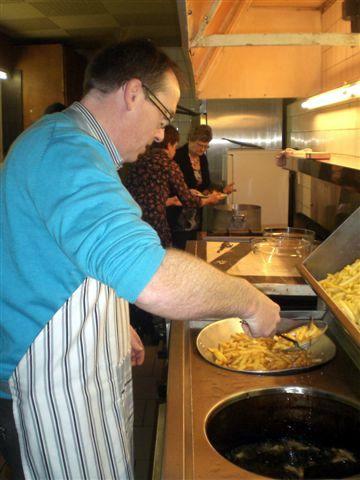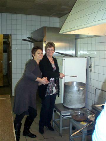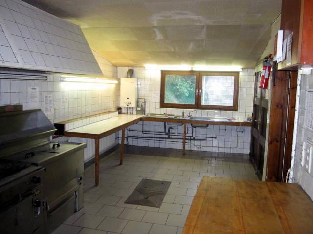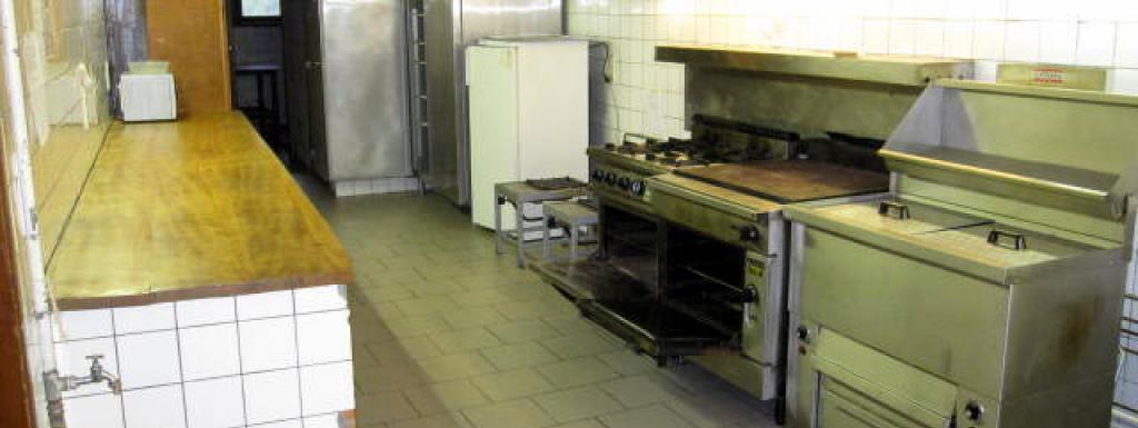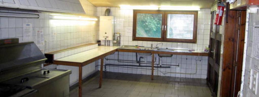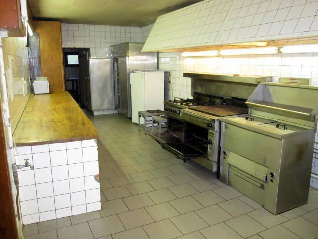 plus: une cuisine très spacieuse (10 m X 3 m) comprenant: un coin vaisselle (évier 2 cuves / eau chaude et froide), une friteuse deux cuves, une cuisinière (taque + four),