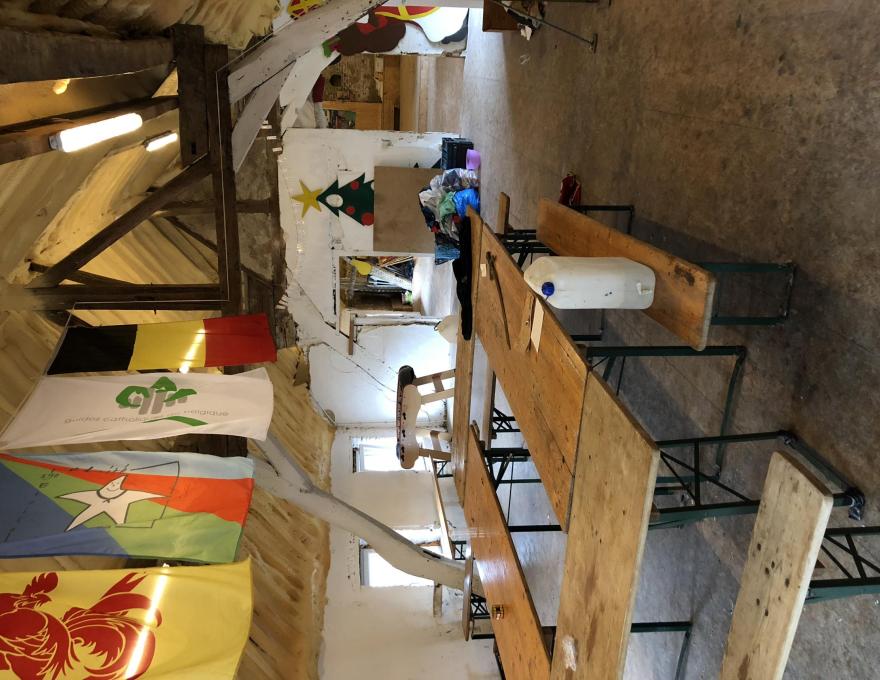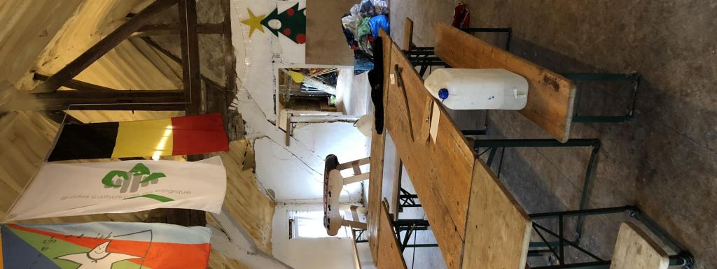 Située au coeur du village de Braives, il s'agit de 3 salles au rdc (attenantes à une école): la salle principale qui sert généralement de dortoir, le bar qui sert généralement de réfectoire, et une cuisine. A l'étage se trouve également le local de l'Unité des Guides de Braives, mais cet étage n'est accessible que pour les camps d'été, pas pendant l'année. L'extérieur se compose des 2 cours d'école (une cour asphaltée devant et prairie derrière - possibilité de feu de camp-) et un verger. Tant l'extérieur que l'intérieur communiquent complètement si bien qu'il est possible d'aller partout sans devoir sortir de l'enceinte du camp.