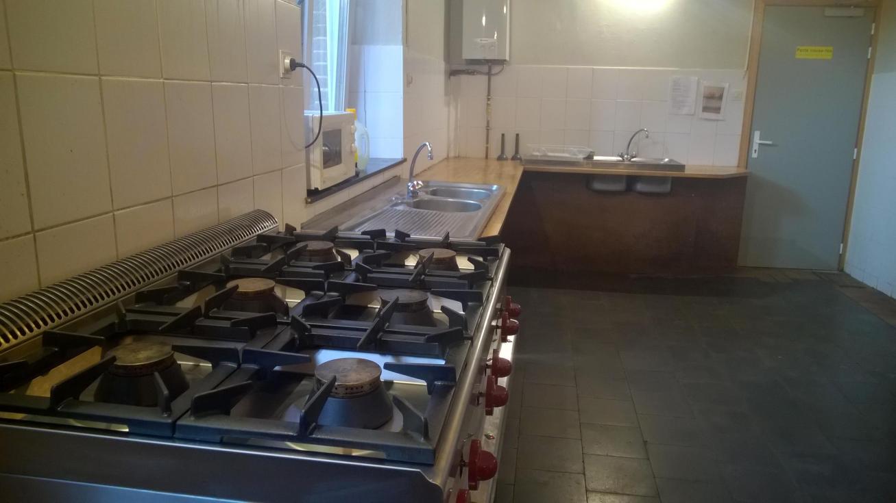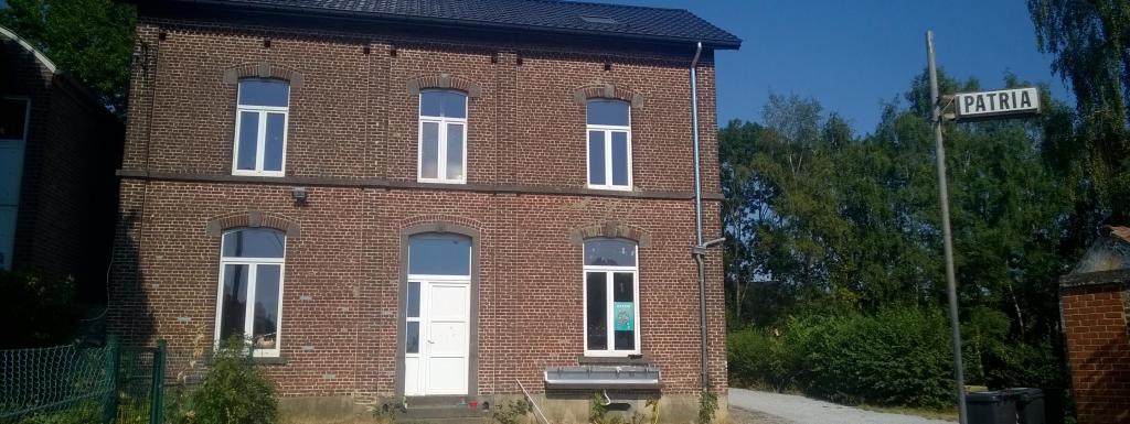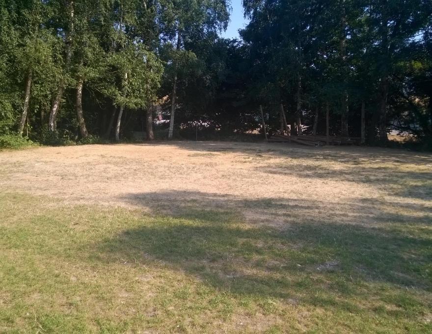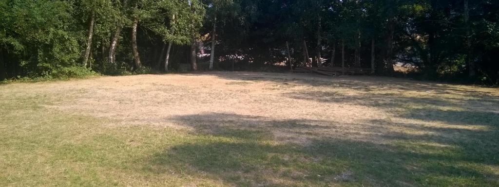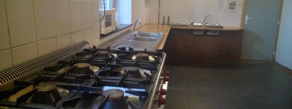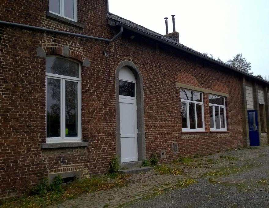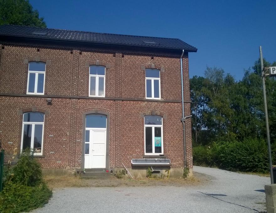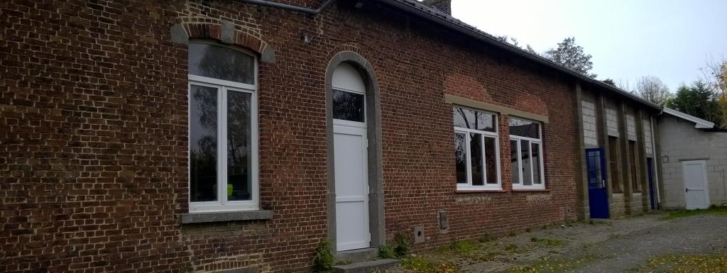 salle de 150 m² à laquelle sont annexés un bar, une cuisine, une scène et des toilettes. Prairie d'environ 4 ares attenante