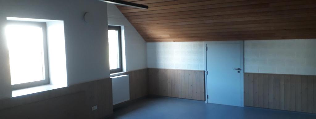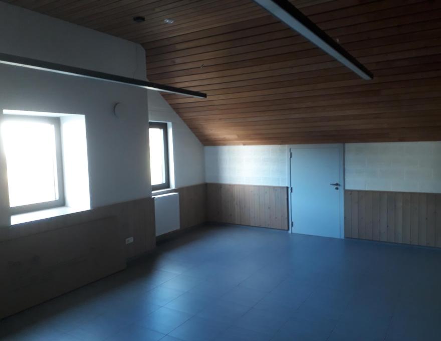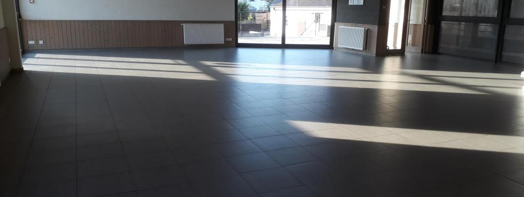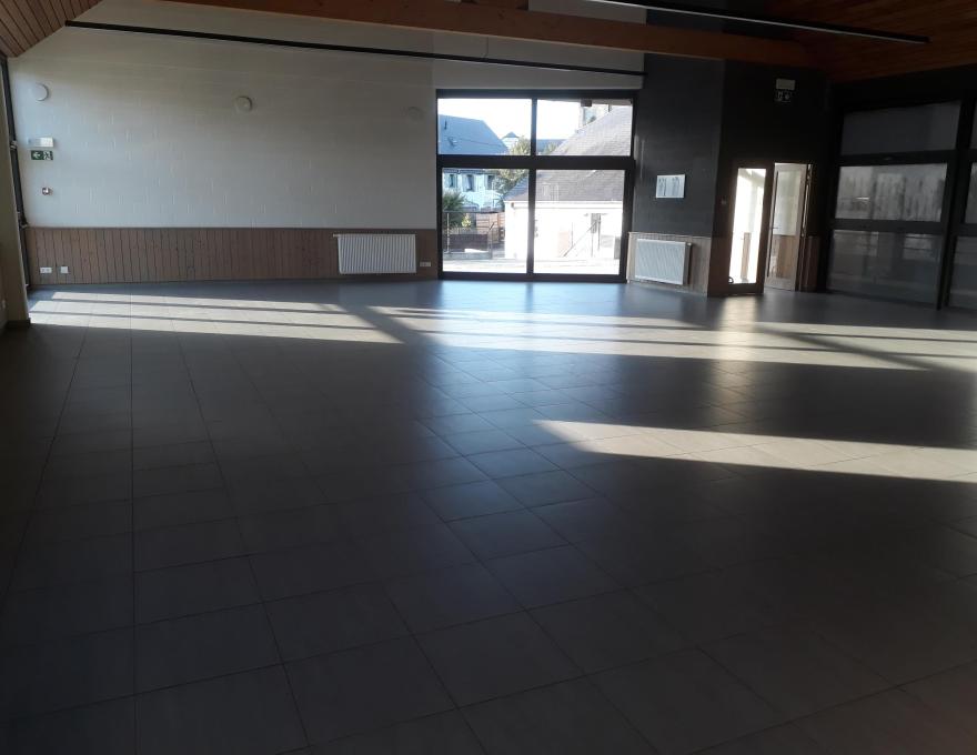Salle de village avec une grande salle, une mezzanine, une salle de 40 m² à l'étage et une cuisine toute équipée.