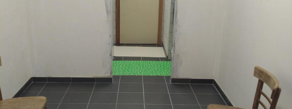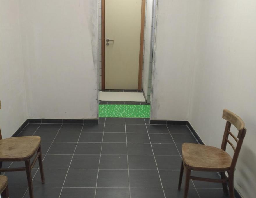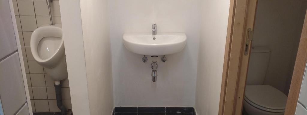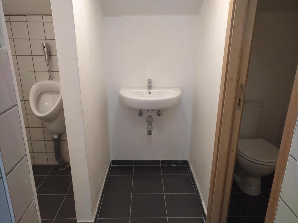 * 1 couloir dans le prolongement de la cuisine avec 2 WC filles + lavabo et 1 WC hommes, 3 urinoirs et 1 lavabo.