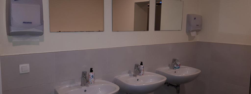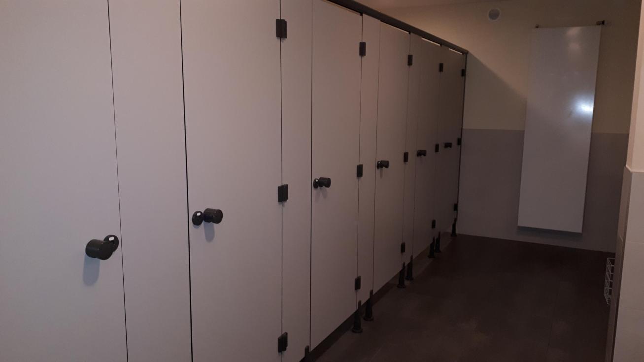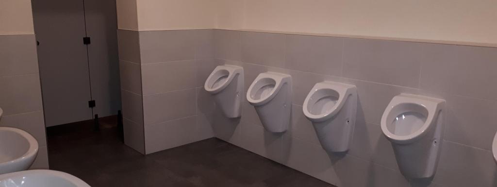 Les dousches (2 X 16 M² ) et les toillettes ( 6 p / femmes + 3 p. / hommes cabines et 6 urinnoires