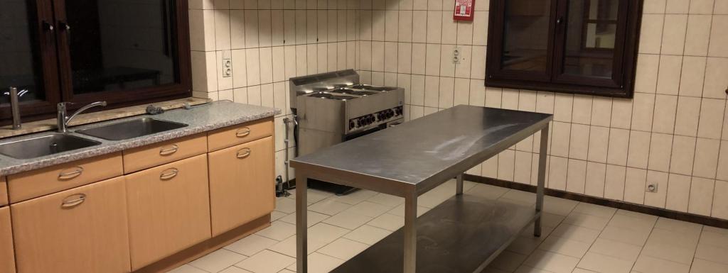 Cuisine (cuisiniere à 6 plats,un four et des frigo, congélateur) : 25 m²