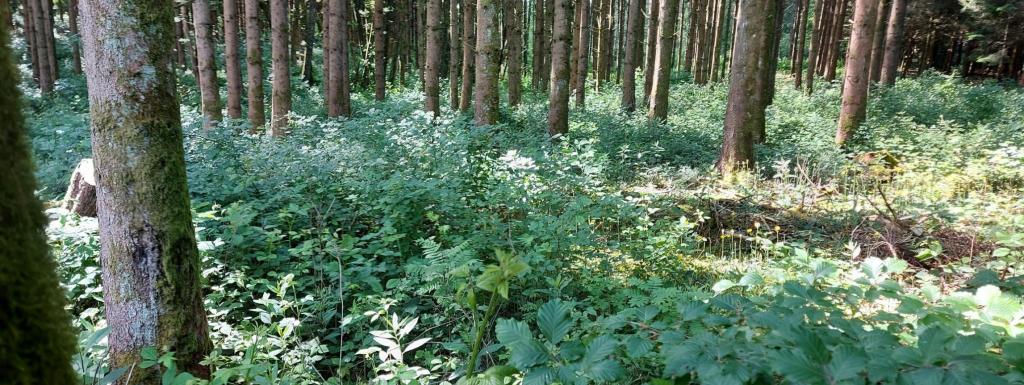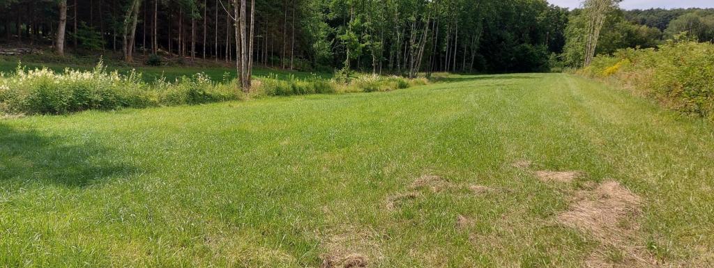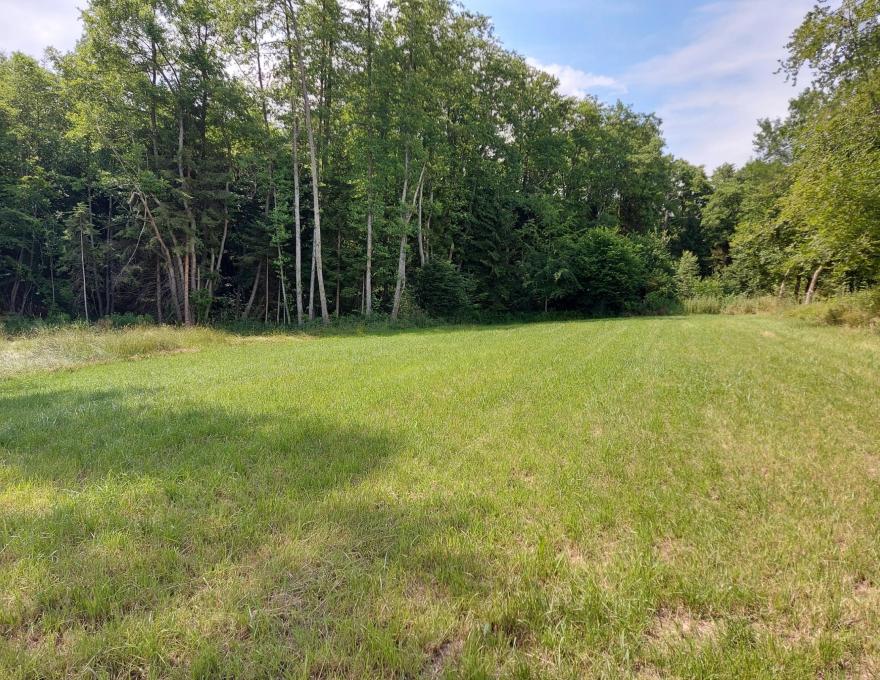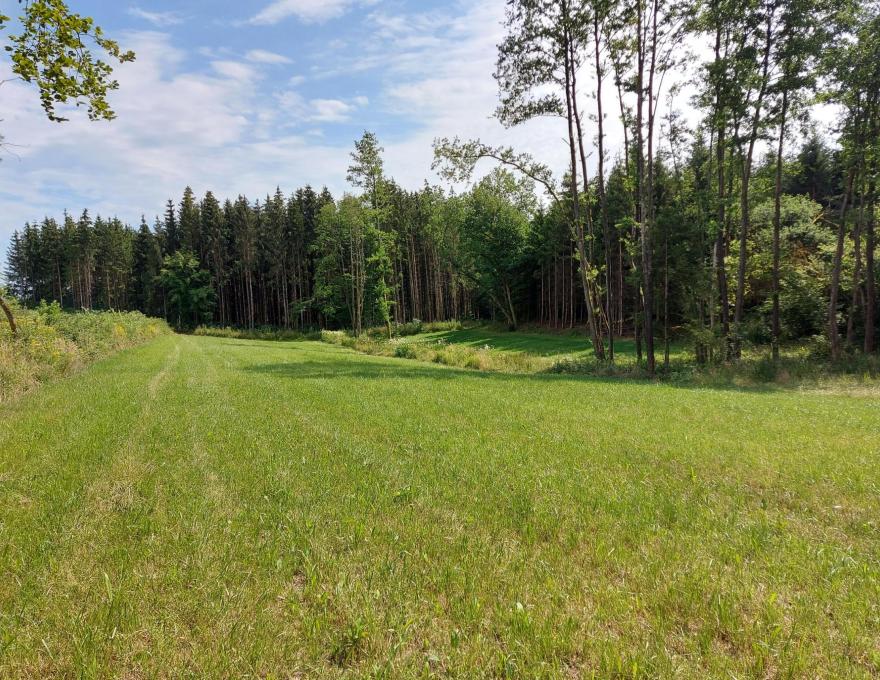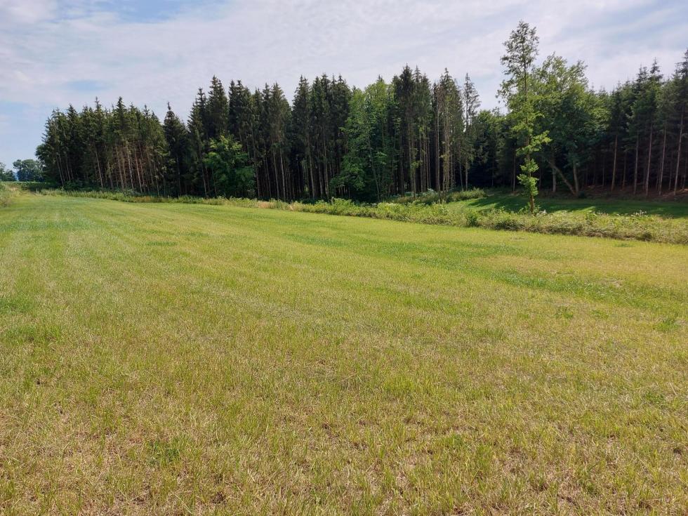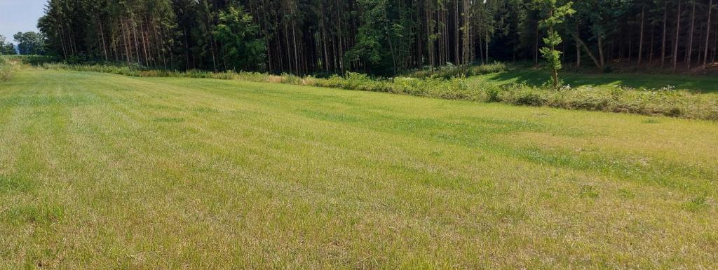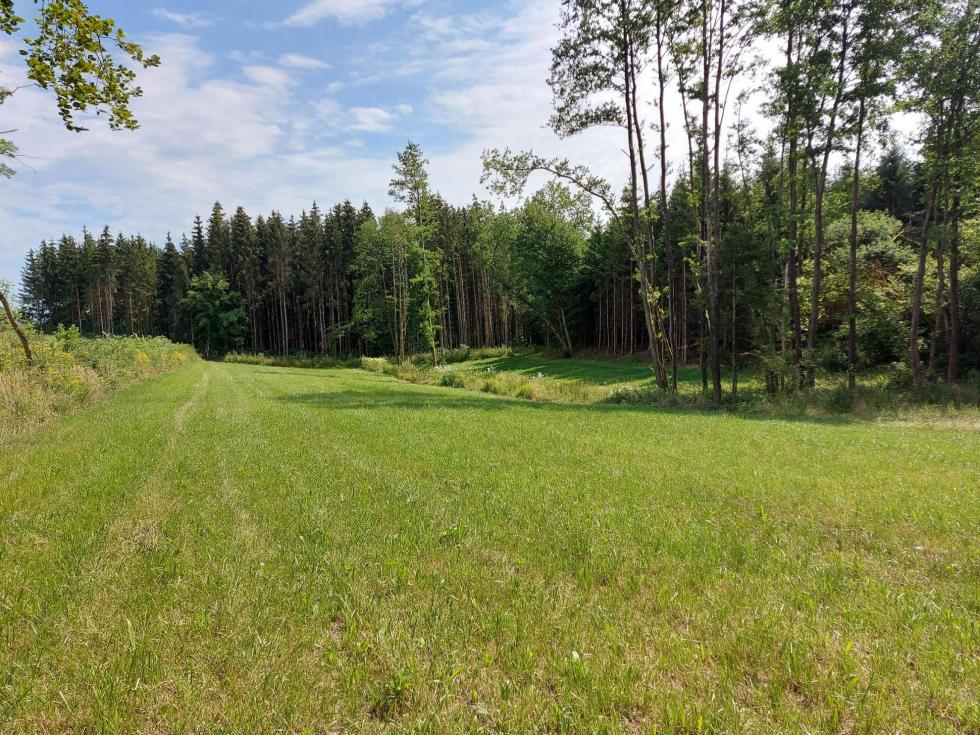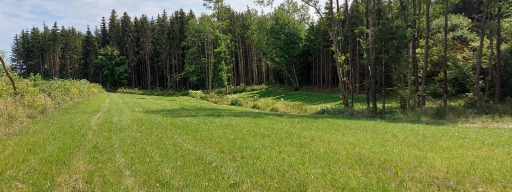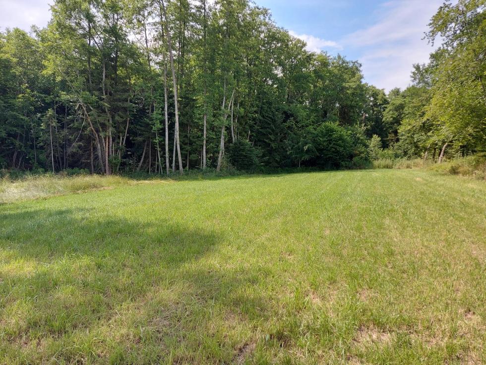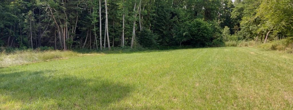 Prairie au creux d'un petit vallon, séparée en deux parties par un petit ruisseau. Entouré essentiellement par des bois.