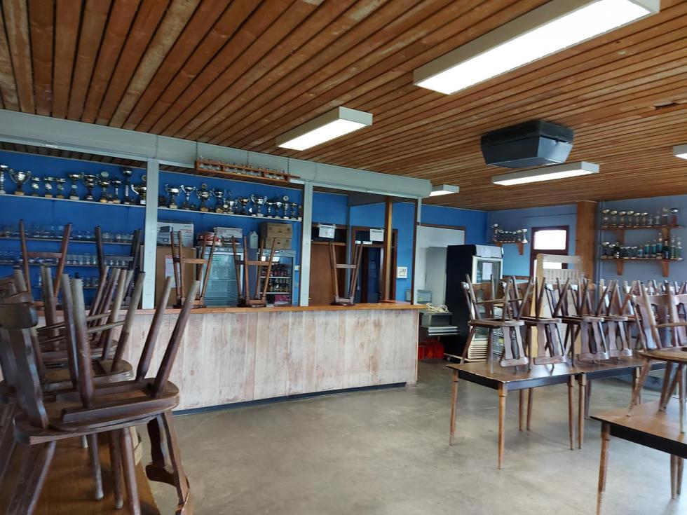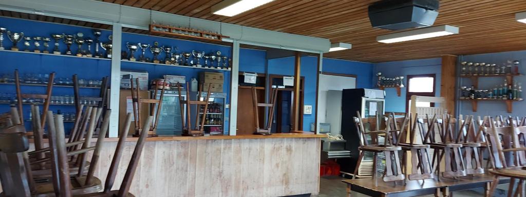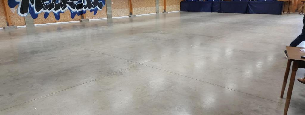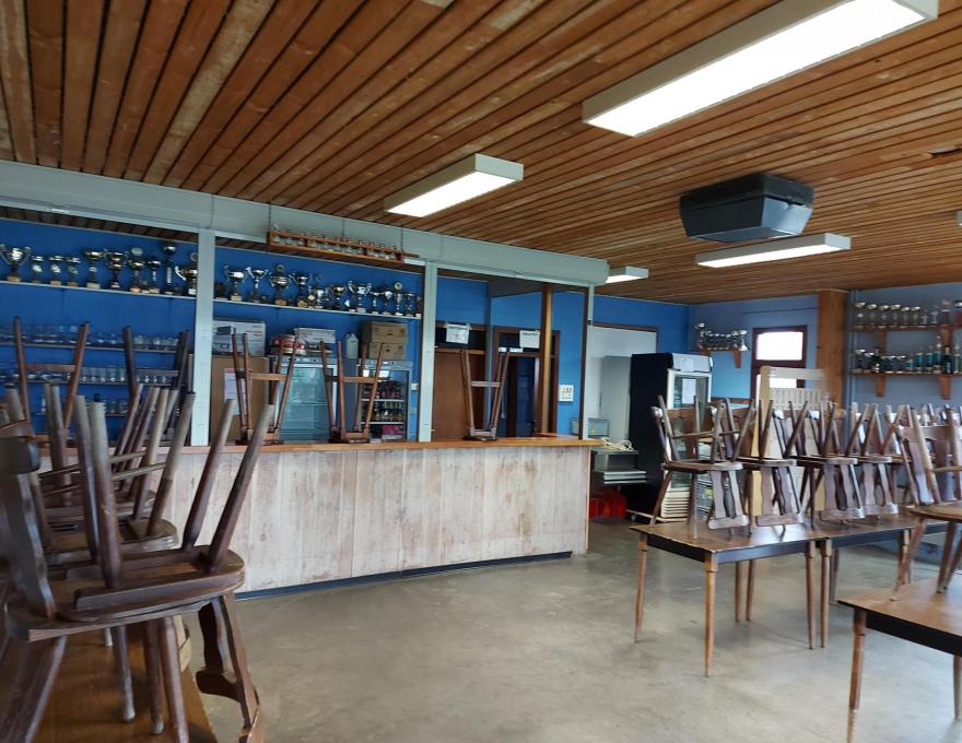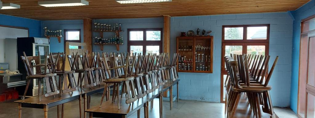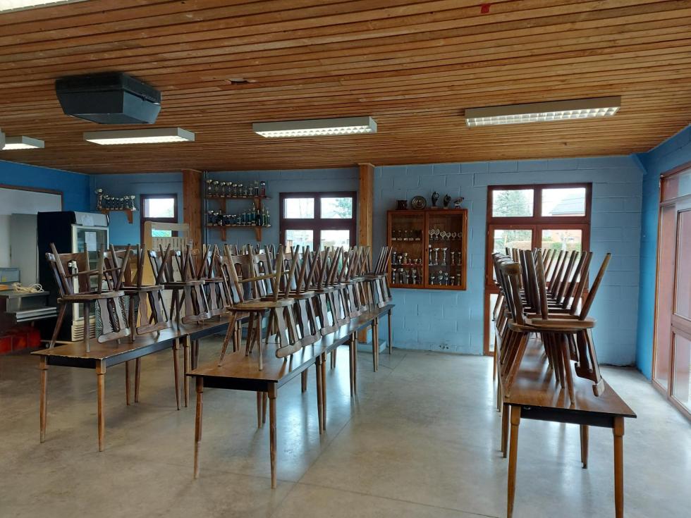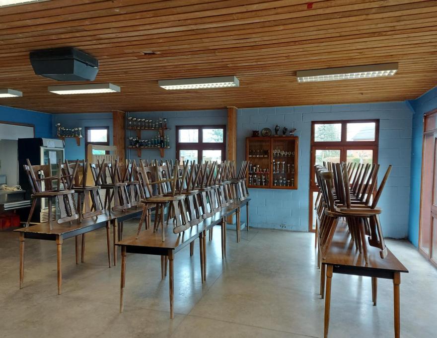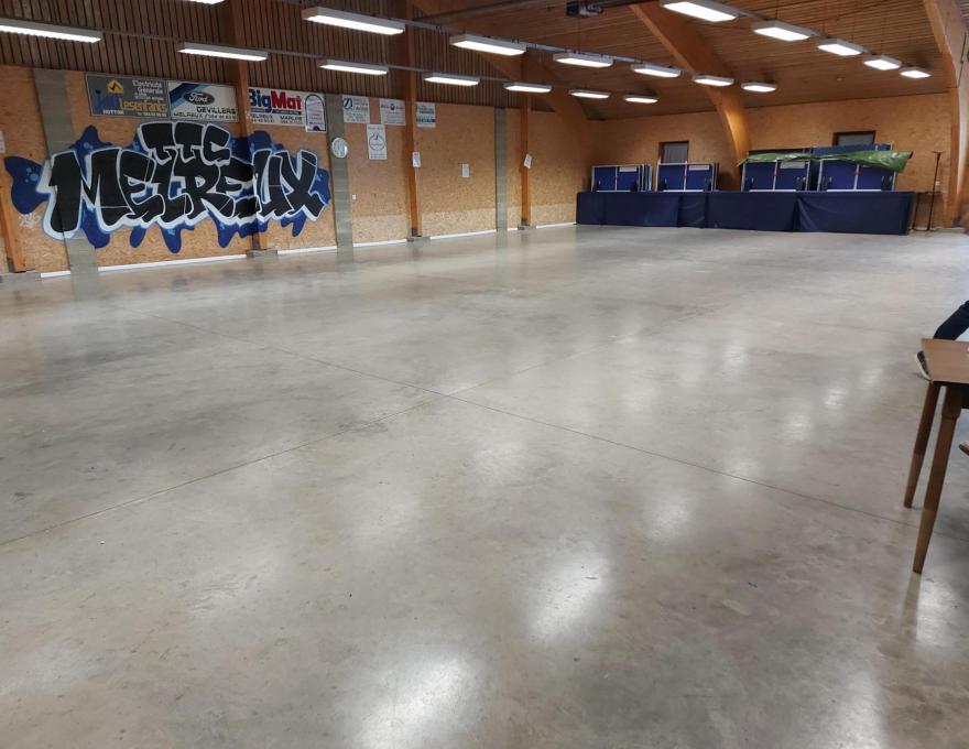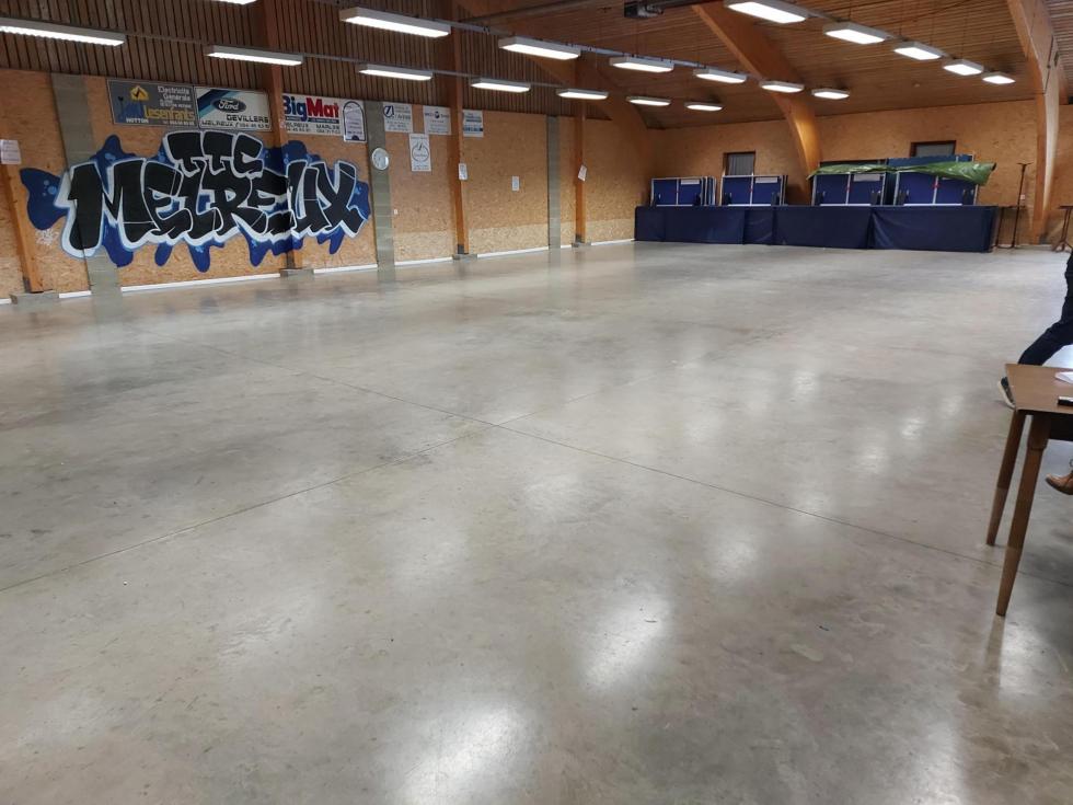Salle du tennis de table, très spacieuse, avec une vitre permettant de voir la salle depuis la partie buvette